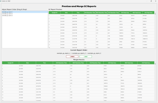 The GC-PREP module provides an intuitive interface for importing, cleaning, merging, and organizing GC data. These automated workflows produce well-structured, analysis-ready datasets while substantially reducing manual data handling. Hundreds of GC files can be parsed and summarized into user-defined tables for further processing. GC PREP provides specific user interfaces for data inspection and management.