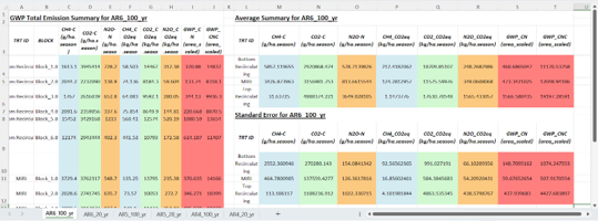 Example of treatment-level GWP summary worksheet generated by the DASIG-GWP module (AR6-100 yr shown).